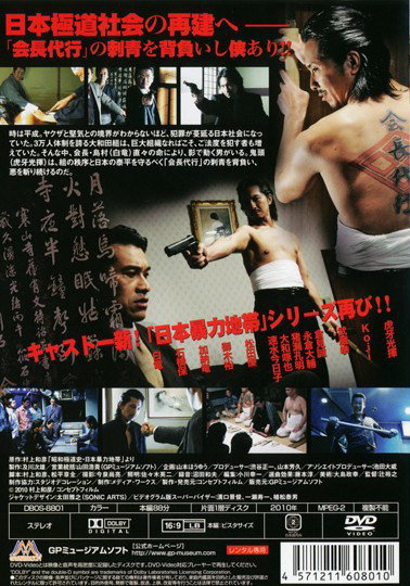 時は平成。ヤクザと堅気との境界がわからないほど、犯罪が蔓延る日本社会になっていた。3万人体制を誇る大和田組は、巨大組織なればこそ、ご法度を犯す者も増えていた。そんな中、会長・島村(白竜)直々の命により、影で動く男がいる。鬼頭(虎牙光揮)は、組の秩序と日本の泰平を守るべく「会長代行」の刺青を背負い、悪を斬り続けるのだ。